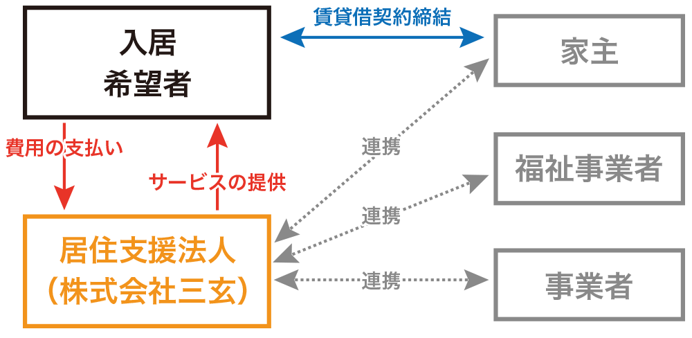 家主の方の不安を解消し、入居につなげていくことを目的に、居住支援サービスの利用を提案いたします。
